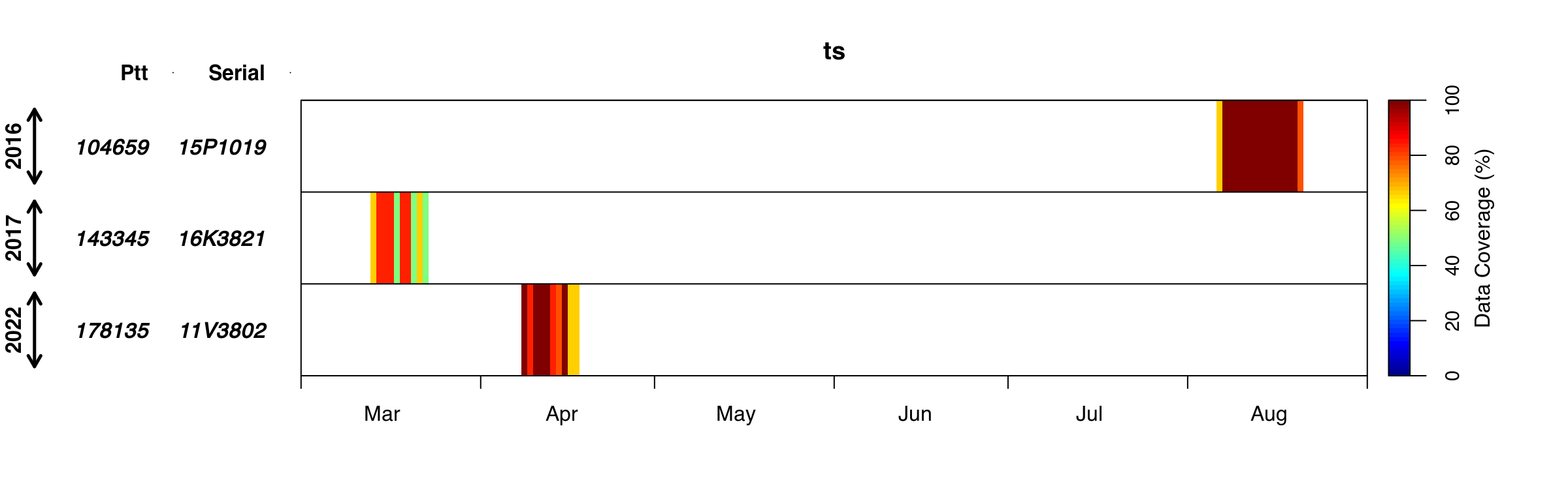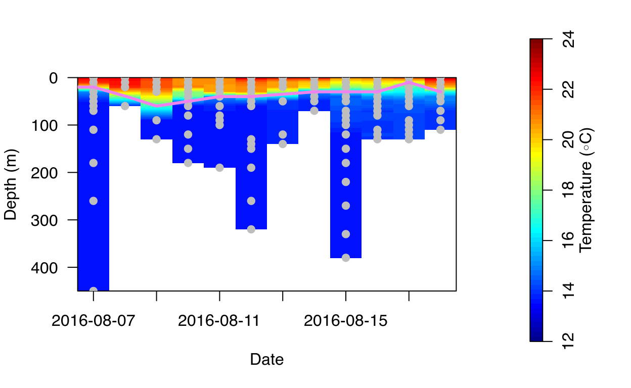 In this third part of the RchivalTag tutorial series, we will learn how to explore PAT-Style depth temperature profiles, a special data product of (pop-up) archival tags from Wildlife Computers to analyze the thermal structure of the water column that requires far less ARGOS transmissions than temperature time series data.