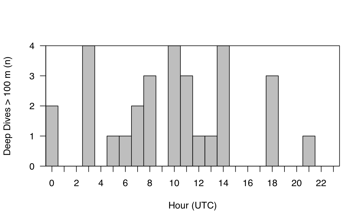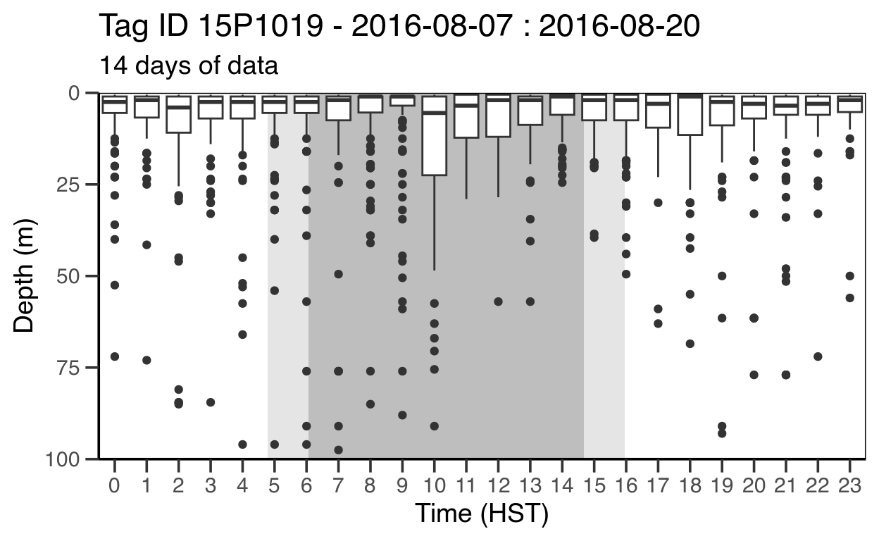 In part 2 of the RchivalTag tutorial series, we learned already different ways to visualize depth time series data. In this tutorial, we will address how to illustrate the data in local time (other time zones).