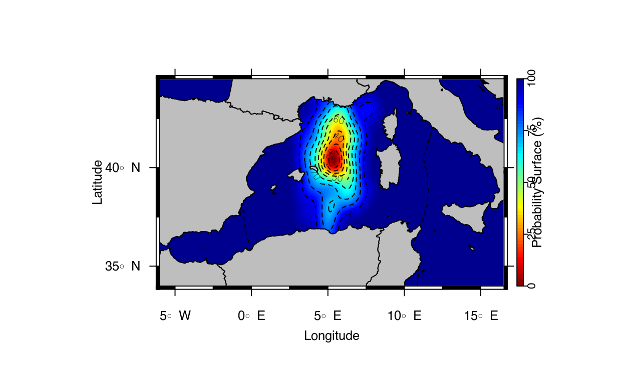 In this tutorial we will learn how to run some basic spatial analyses based on maximum likelihood tracks, probability surfaces and simulated fishing effort data (kernel densities).
