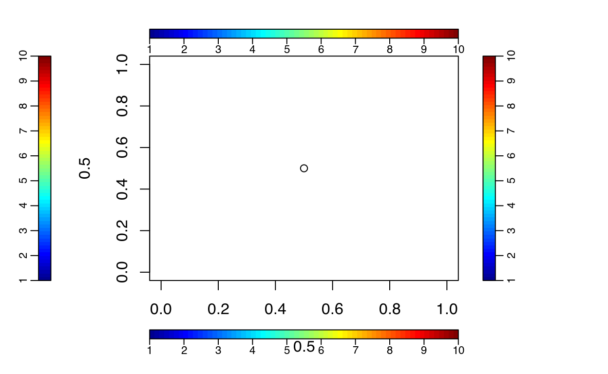 plot(0.5,0.5,xlim=c(0,1),ylim=c(0,1))